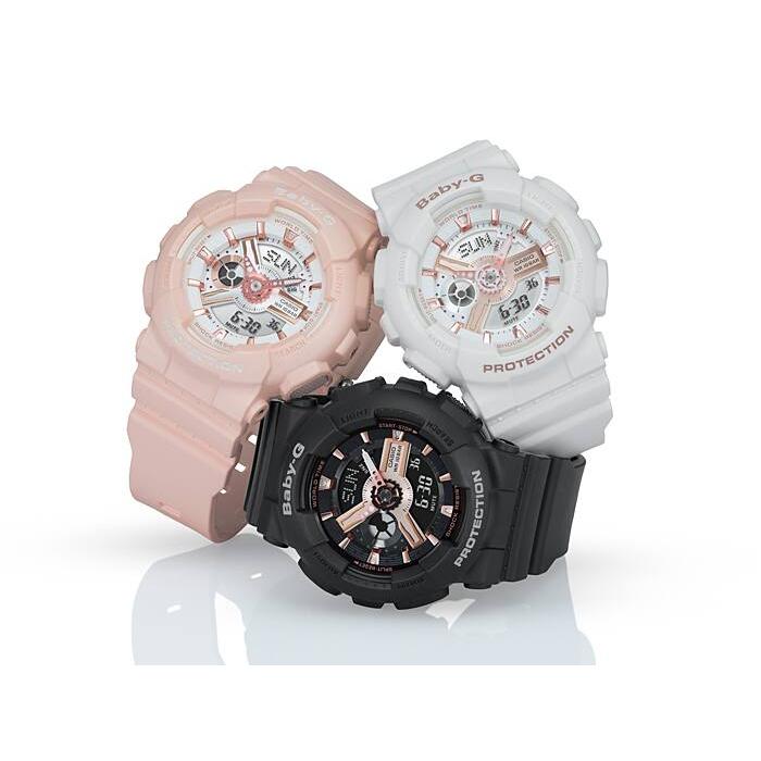 이 모델은 로즈 골드 메탈릭 디자인으로 악센트를 더했습니다. 기본 모델은 남성적인 디자인으로 인기 있는 BA-110입니다. 케이스와 밴드는 표준 화이트입니다. 시원한 악센트 역할을 하는 메탈릭 파트에 부드러운 로즈 골드 색상을 과감하게 적용하여 남성적인 디자인과 여성적인 색상을 결합한 뉘앙스를 가진 모델을 만들어냈습니다. 이 모델은 스트릿 패션을 조정하는 데 필수품이 될 운명입니다.